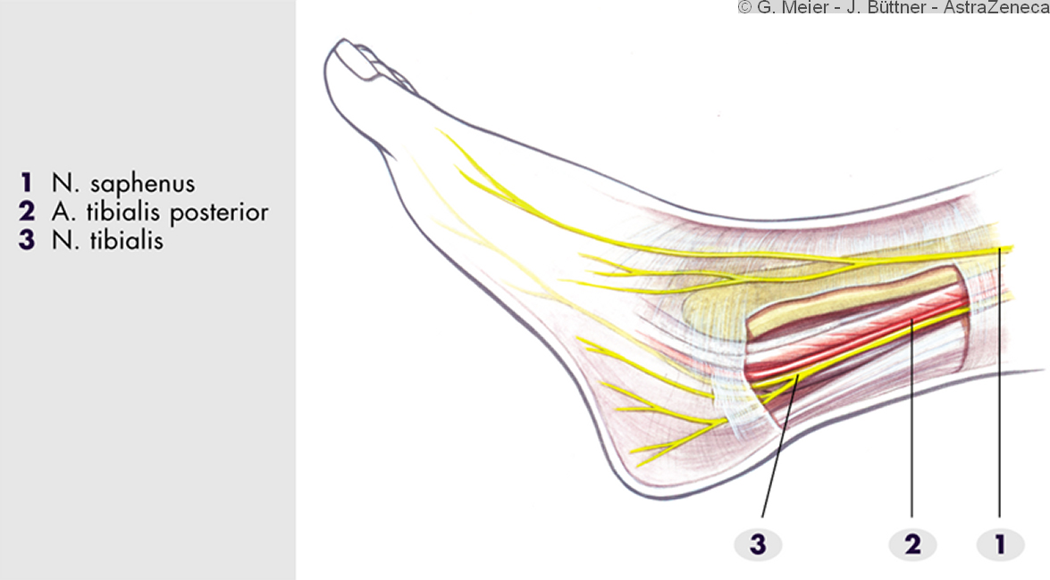 N. suralis kan alternativt opsøges subcutant (5 ml.) mellem laterale malleol og achillessenen.