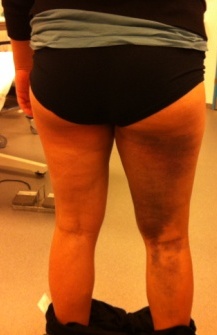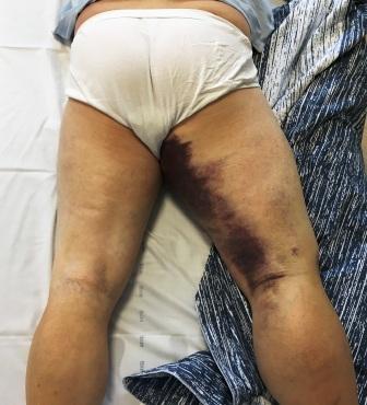 stort hæmatom på baglåret:
