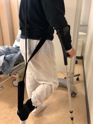 • Benyt stokke i op til 6 uger post opr. • 0-2 uger: Tå støtte (skygge belastning) • 3-4 uge: 15-40 % vægtbæring