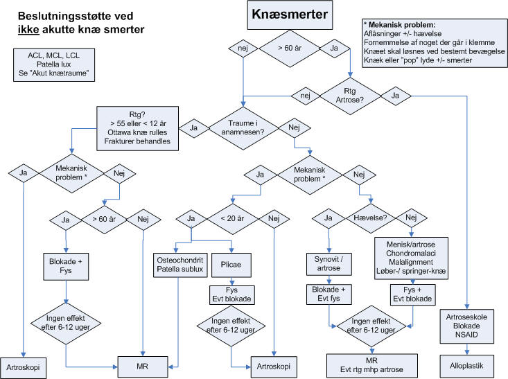 kontrol ved knæspecialist i ambulatoriet snarest (maks en uge), evt. vurdering ved bagvagt/supervisor mhp
