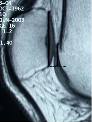 Brug MR sagitale snit, kør ned til tuberositas og mål afstand fra midten af