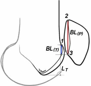 Index: BL(P)/BL(T)*100= index: <12,5%= Patella alta. >50% = Patella infera